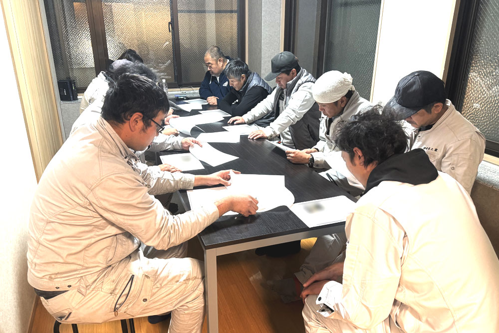 鉄筋や電気・水道などの埋没物を損傷させてしまうと、構造物の強度・インフラの安定供給を確保することができません。長年、非破壊検査工事・ダイヤモンド工事を行ってきた弊社では、穿孔作業の重大性を認識し、責任感をもって施工します。施工前に事前調査を行い担当作業員と打合せをしっかりと行うため迅速に対応が可能です。月に一度現場安全協議会の資料をもとに社員全員、協力会社も含め安全会議も行っております。